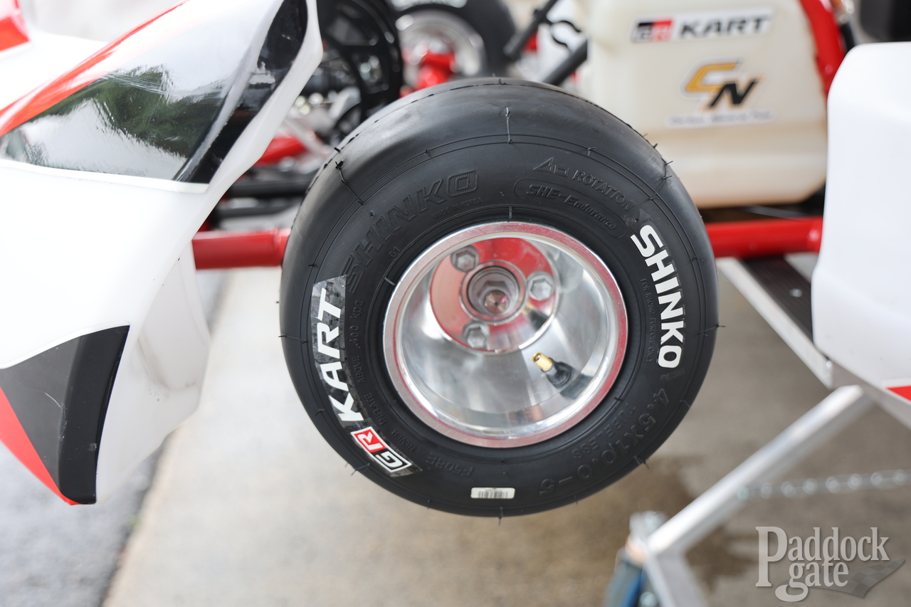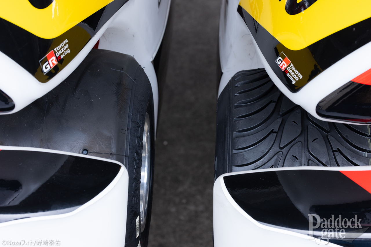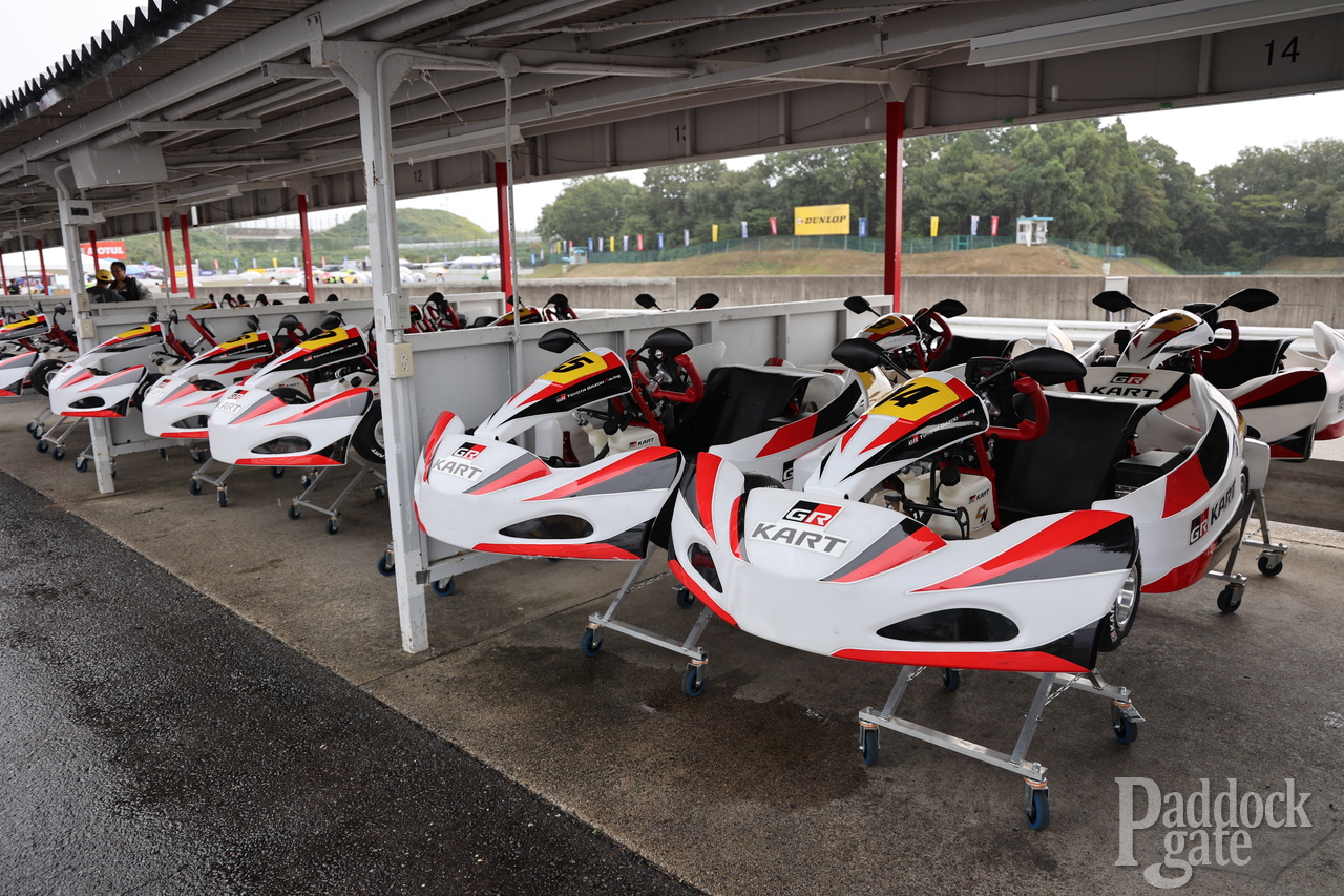 また一部のマシンにはSHINKOタイヤ製のレインタイヤが装着されていました。パターンはハイグリップタイヤのようでかっこいい一方で、筆者としてはGRカートのコンセプトとレインタイヤの存在がミスマッチなようにも感じます。オールウェザータイヤ1種類に統一したほうが良いのでは?