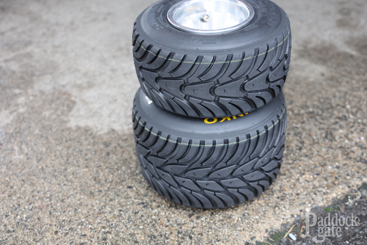 今回のお披露目会のためにトヨタが持ち込んだGRカートは約20台。5月末に富士スピードウェイにて発表されたときはDUNLOPタイヤを装着していましたが、今回はSHINKO製のタイヤを全車装着しており、これが指定タイヤとなる予定です。SHINKOは韓国でバイク用タイヤなどを製造しているメーカーであり、かつてはYOKOHAMAカート用タイヤの製造を担っていました。SHINKOは現在自社ブランドでCIK-FIA公認のカートタイヤも製造しており、今回GRカートに装着されていたスリックタイヤ(SHE-Enduranceのモデル名が見える)は新規開発モデルと思われます。