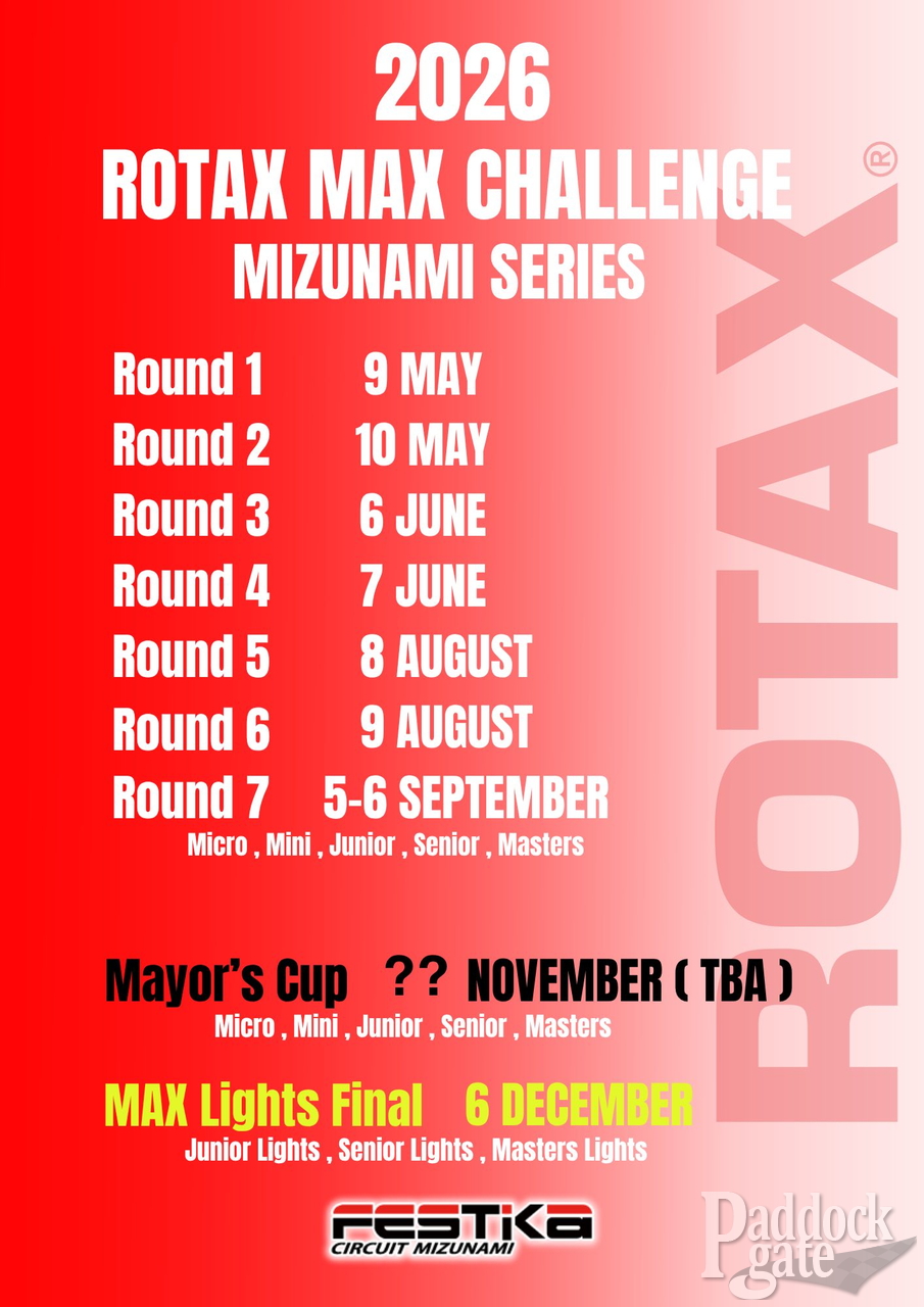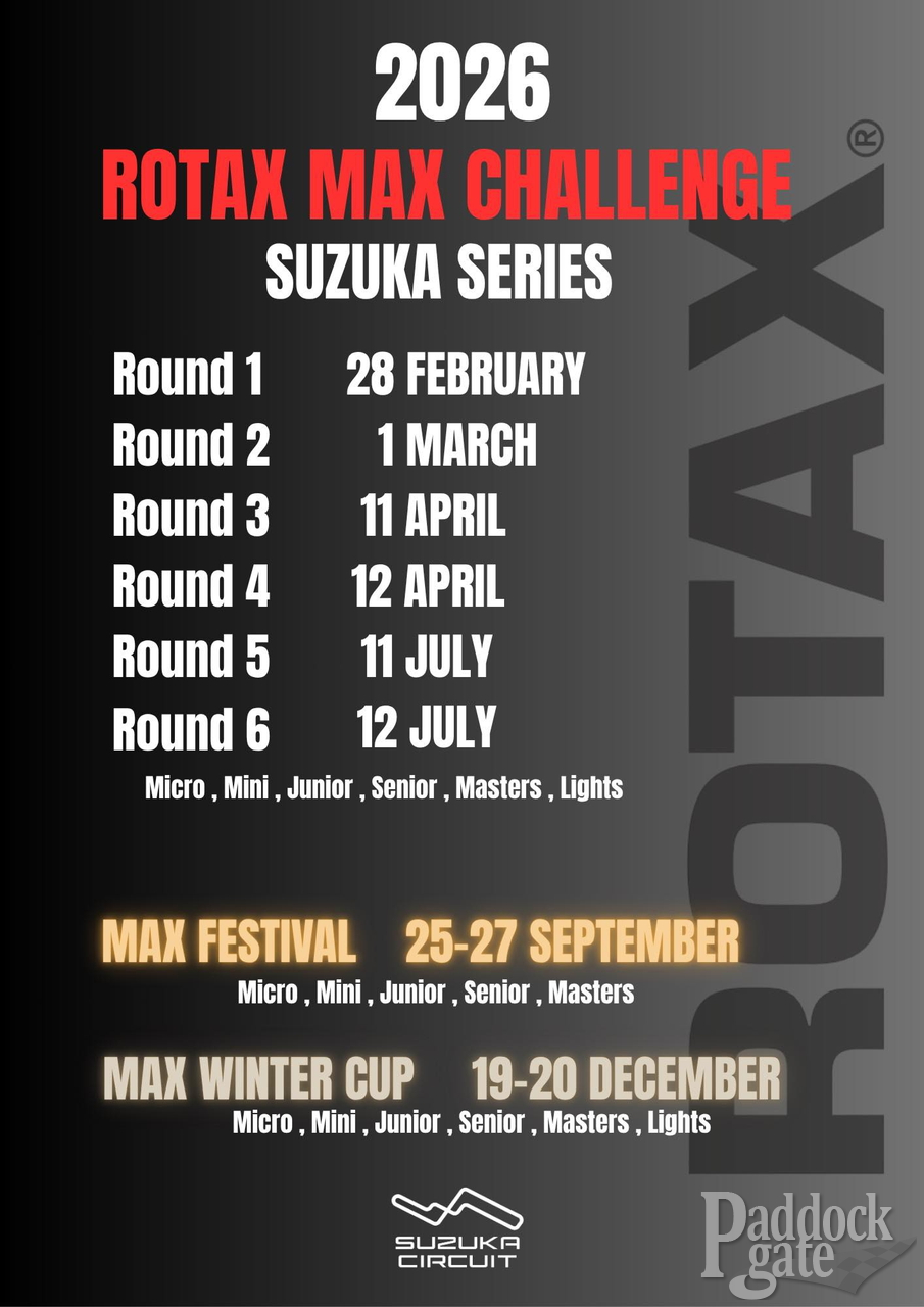 2026年シーズンのRotax Max Challenge(RMC)瑞浪シリーズ、RMC鈴鹿シリーズの日程が発表されました。