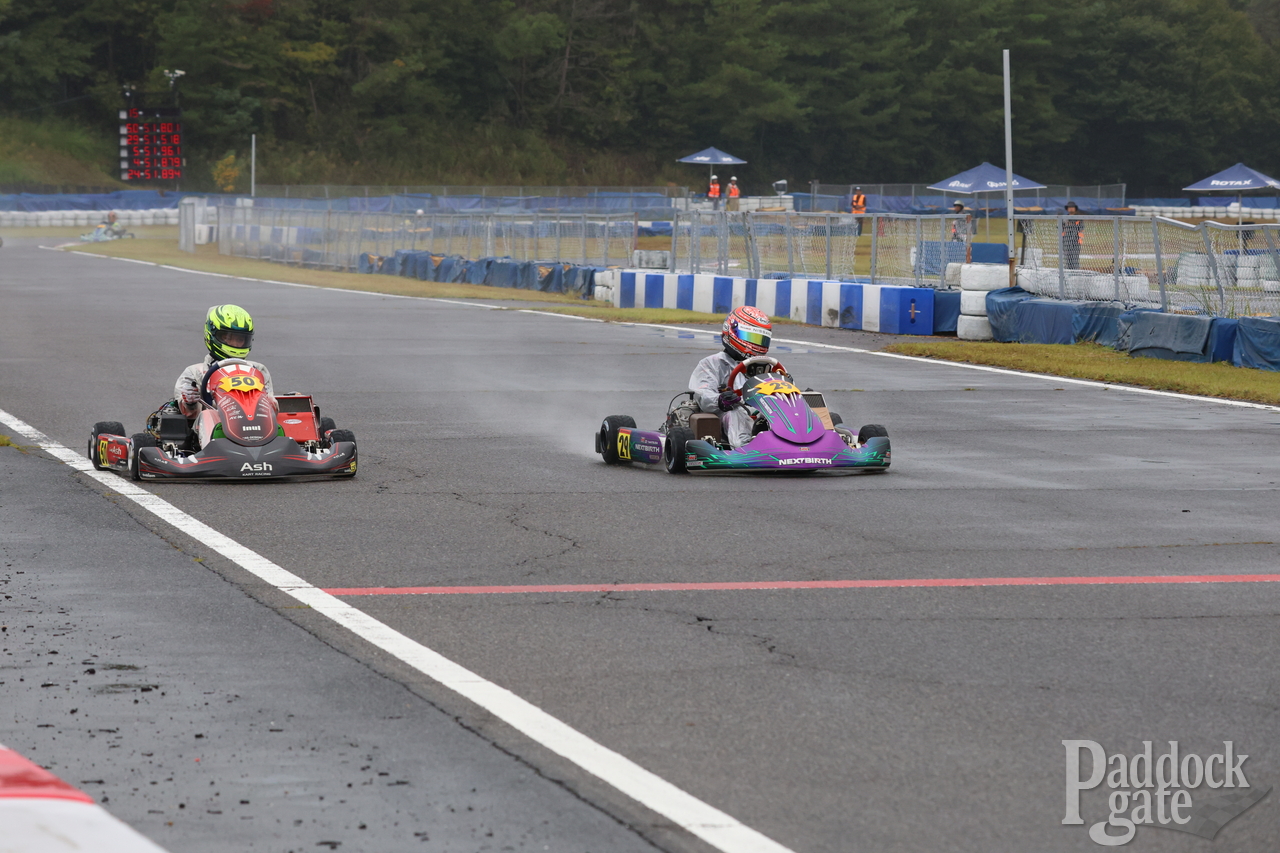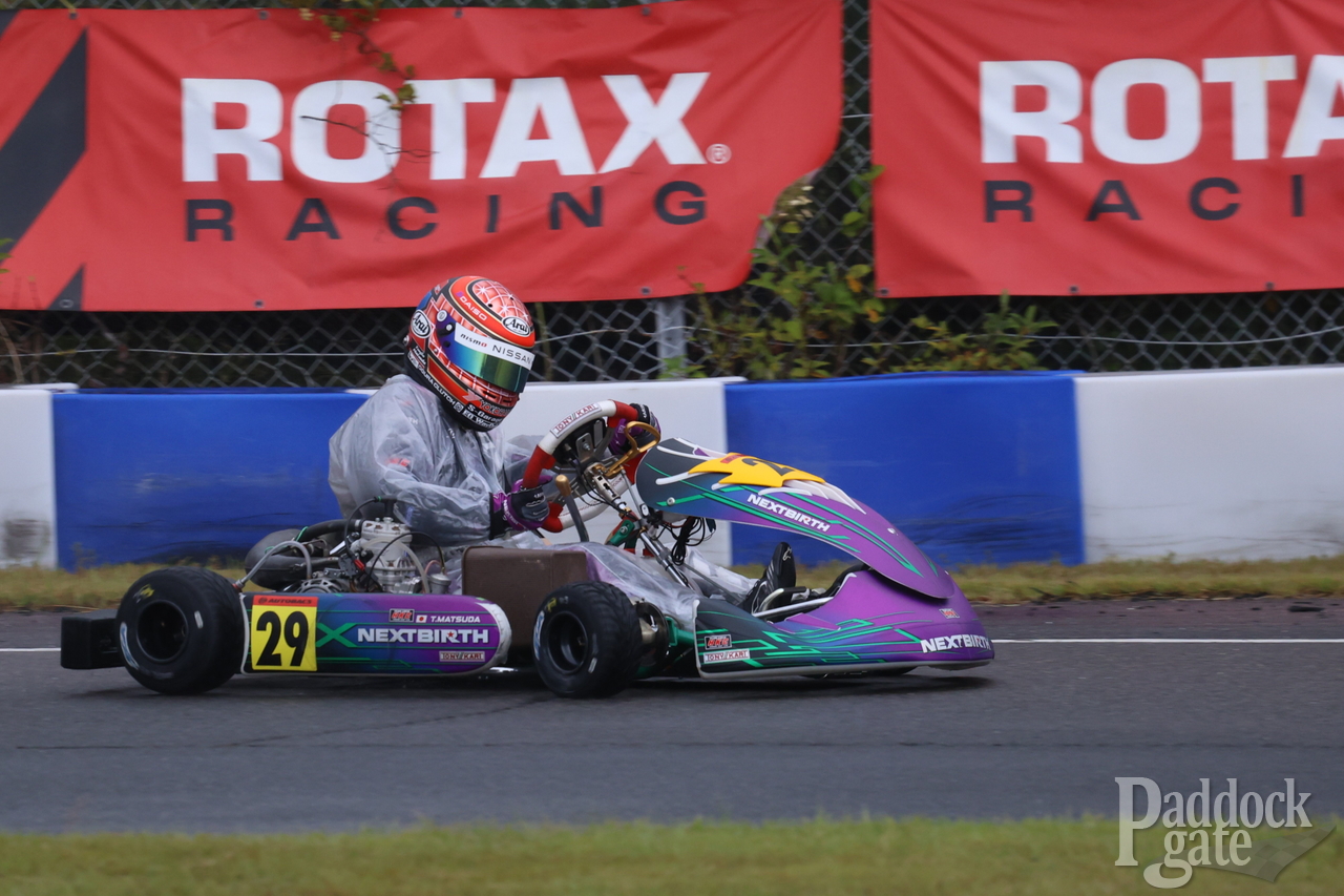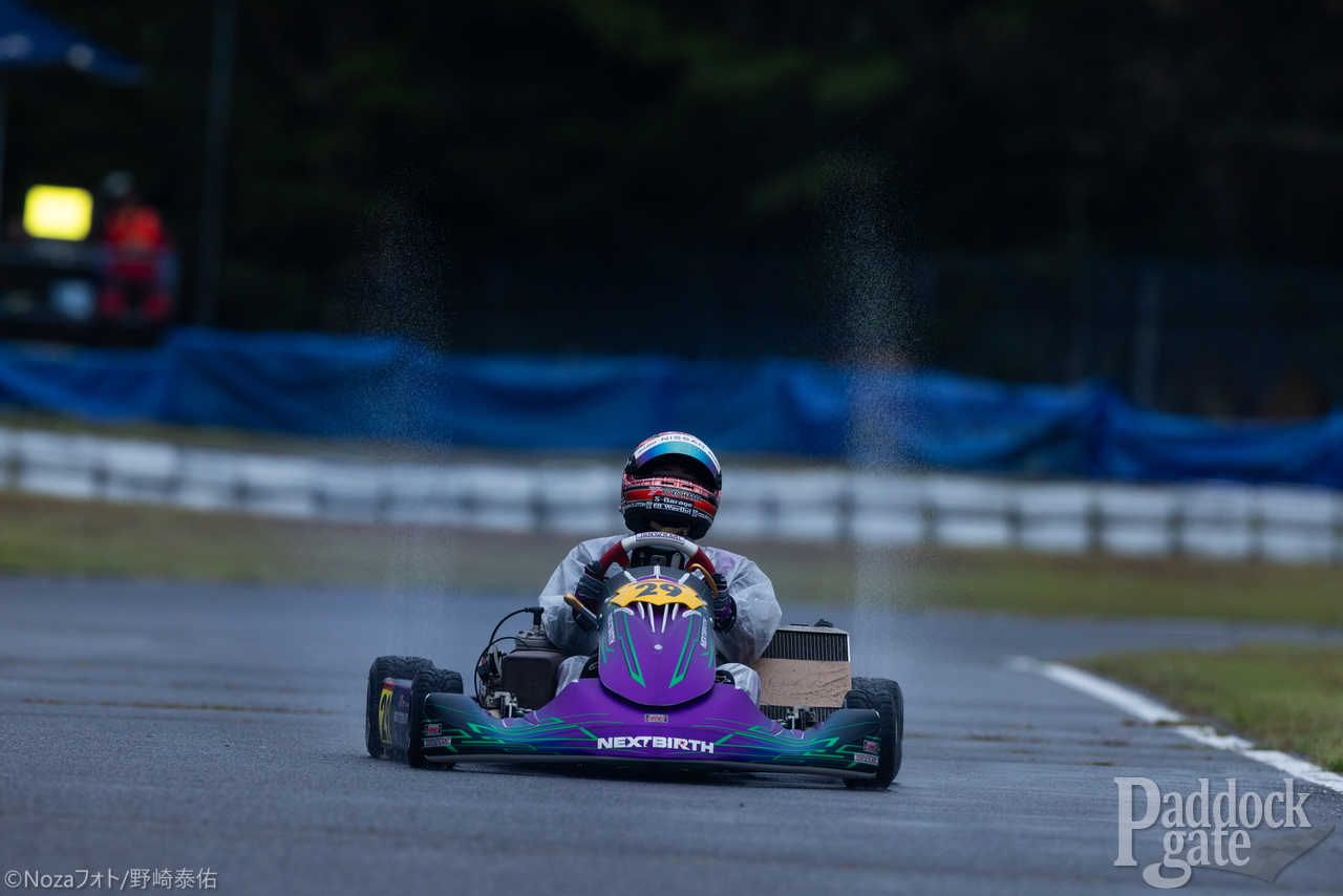 伊東聖七は必死で食らいつこうとするが、松田次生はライバル達よりコンマ2秒程度速いラップタイムを刻み、後方を置き去りにしていく。昨シーズンの参戦開始当初はほぼ30年ぶりのカートレースということもあり現代レーシングカートレースに必要なドライビングテクニックに苦戦する様子だった松田次生だったが、Shifterクラスの圧倒的なパワーを制御する技術にはライバルから一目置かれていた。今回の雨のレースでは、ハンドルを多く切り体重をアウト側にかけるカートの伝統的なレインテクニックと、現代的なコンパクトラインを組み合わせた走りを見せていた。