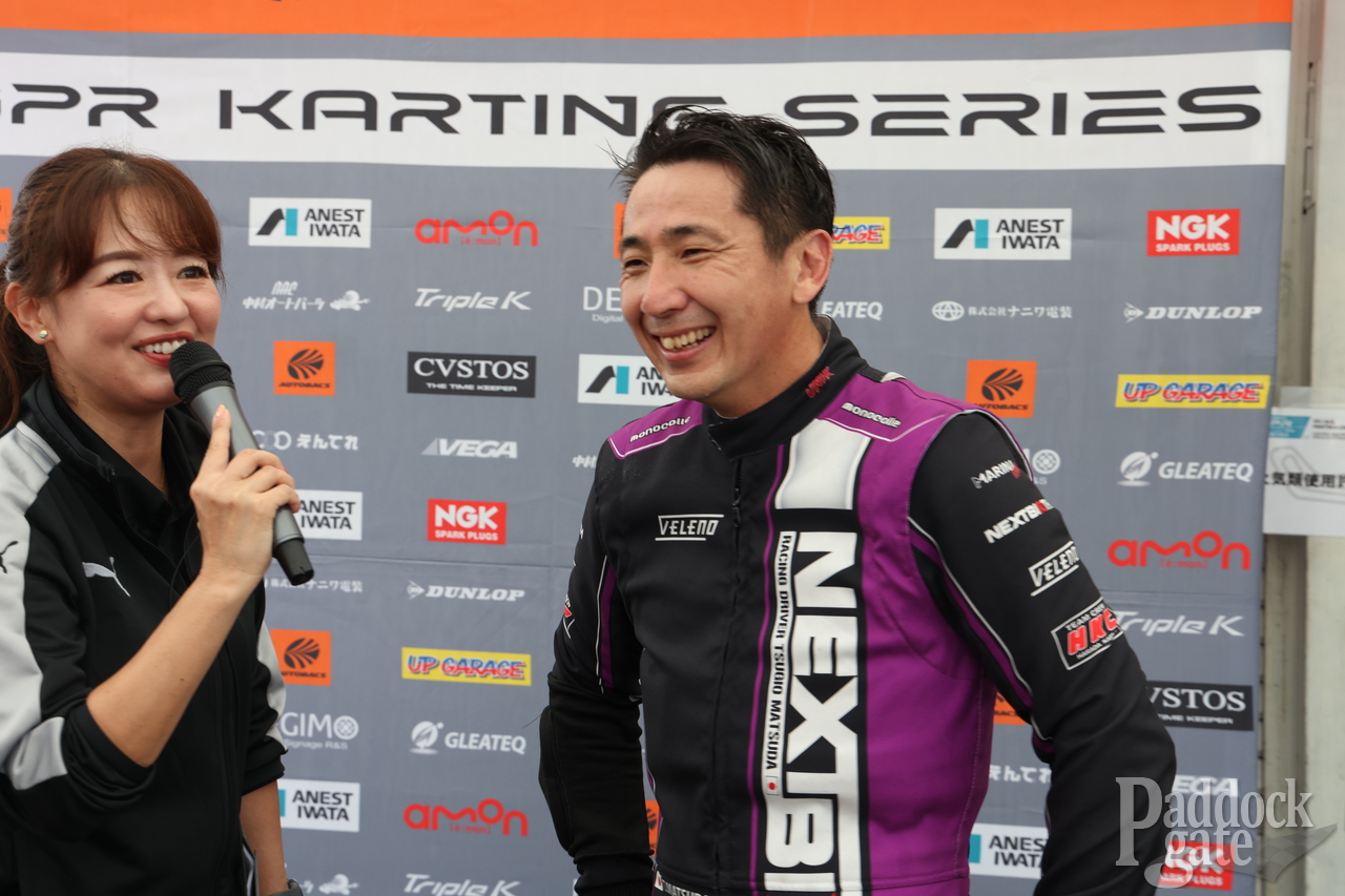 「自分たちのやれる範囲でできる限りの努力をして掴んだ結果であり、SUPER GTでの優勝と同じぐらい嬉しいです。カートレースは16歳ぐらいの若いドライバーもいて多くの刺激をもらえ、とても楽しくレースができます。僕は今46歳ですが、僕ら世代の人たちがカートレースに復帰してくるきっかけになったのではないかと思います。ドライだった第7戦もかなりいいところまで行けて自信になったので、ドライでも優勝できるように頑張ります。」