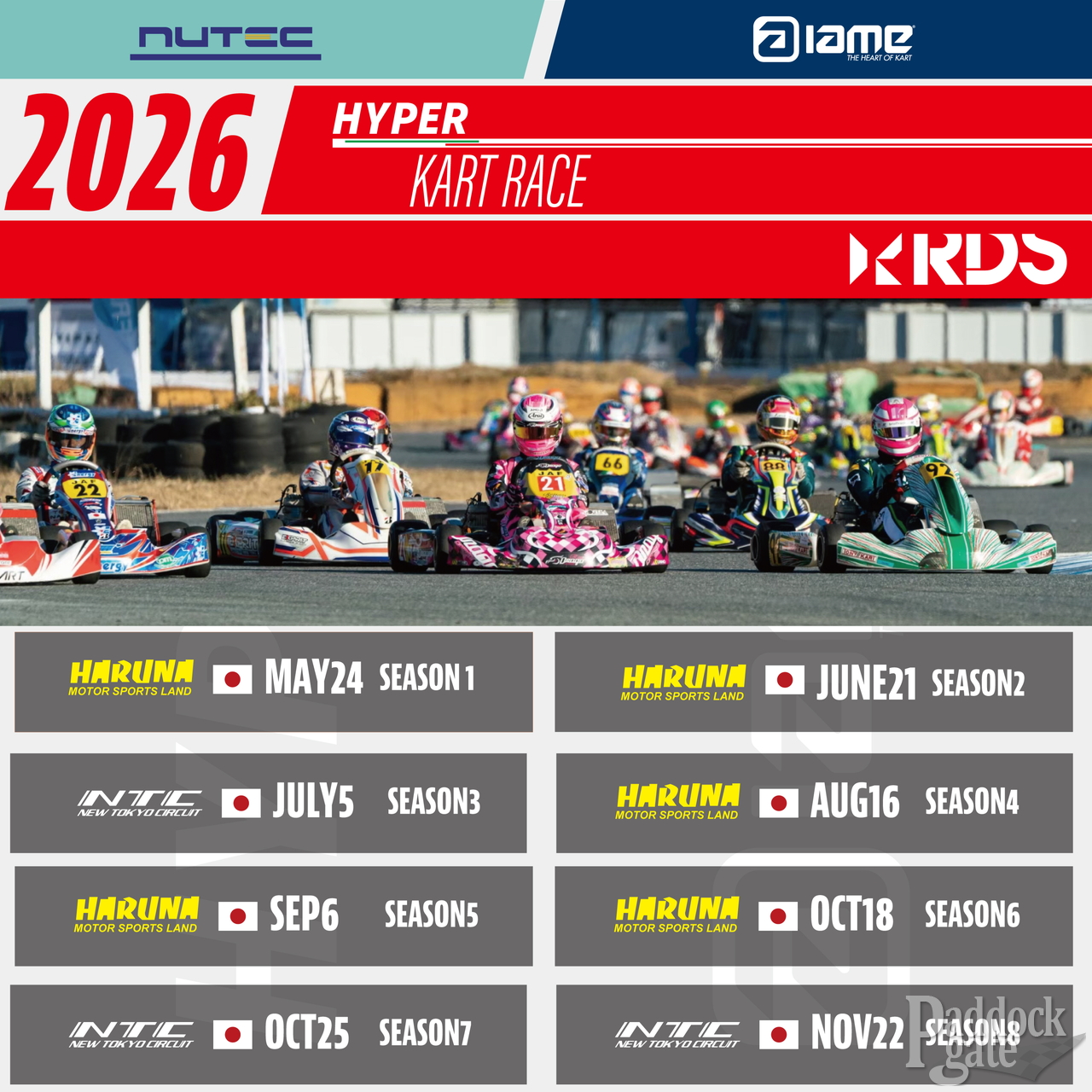 今年は2026 NUTEC-IAME RDS HYPER KART RACEと銘打ち、通年開催およびシーズン制の導入という新たな挑戦をスタート。榛名モータースポーツランドで8シーズン、新東京サーキット(NTC)で3シーズンを行います。